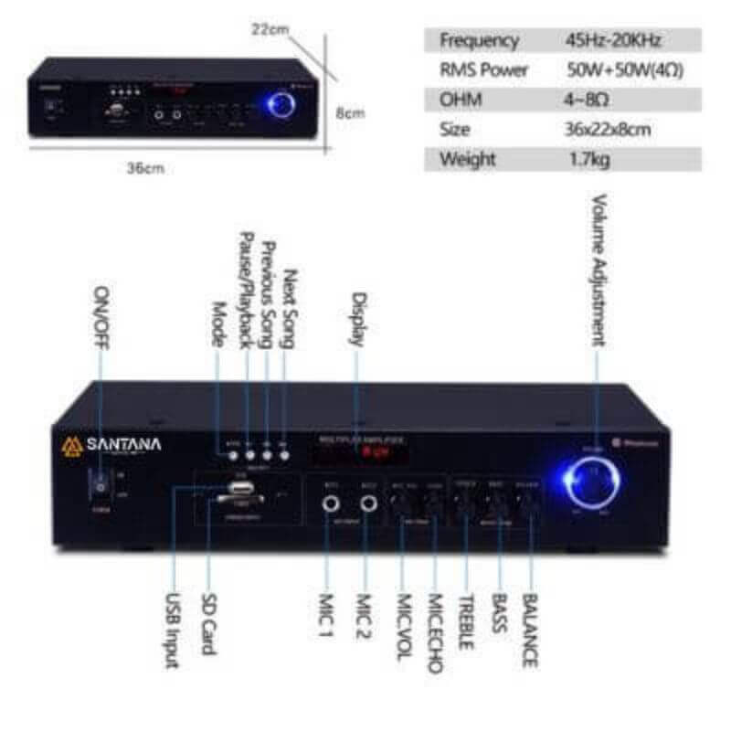 - Amplifier: Ampli 2 kênh (phiên bản nâng cấp 50W+50W) tích hợp Bluetooth cho trải nghiệm giải trí thuận tiện.