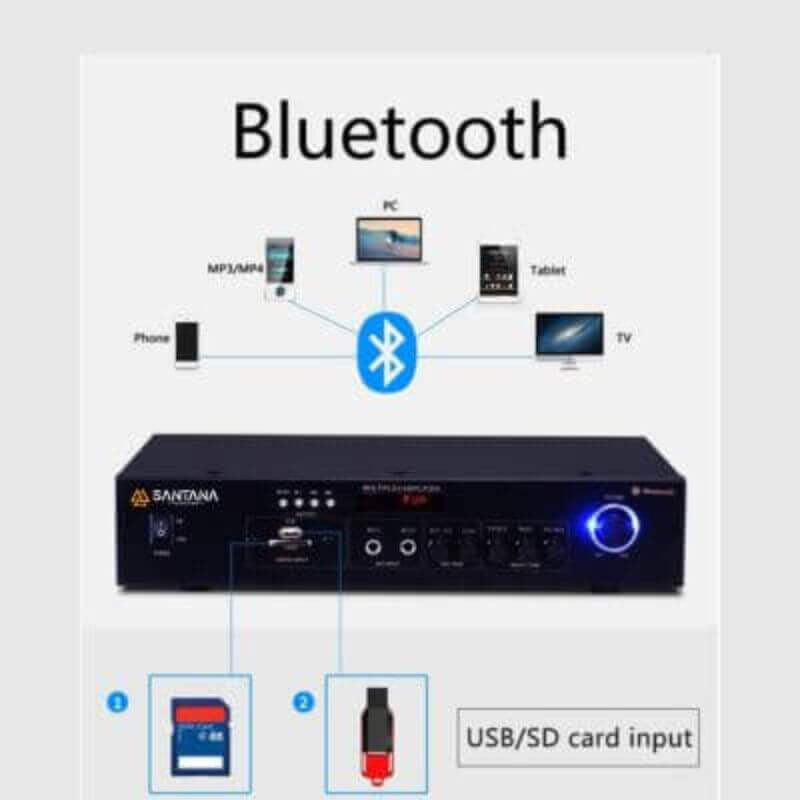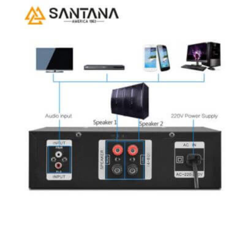 Dàn âm thanh SANTANA S-303 8 inch dành cho Karaoke tại nhà là một hệ thống đầy đủ với loa được làm từ chất liệu gỗ, mang lại trải nghiệm âm thanh chất lượng cao cho gia đình. Hệ thống này kết hợp loa siêu trầm 8 inch và ampli 2 kênh (phiên bản nâng cấp 50W+50W), với khả năng kết nối linh hoạt qua Bluetooth, cung cấp sự giải trí dễ dàng cho mọi gia đình.