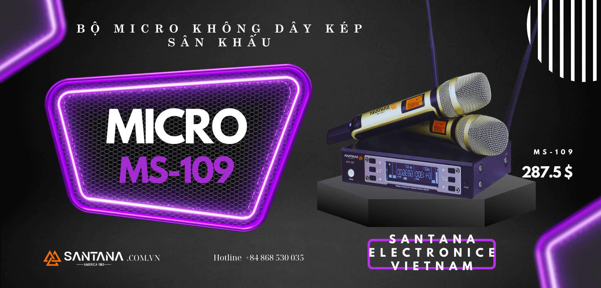 BỘ MICRO KHÔNG DÂY KÉP CHUYÊN NGHIỆP SANTANA MS-109 – Sự Lựa Chọn Tối Ưu Cho Âm Thanh Chất Lượng